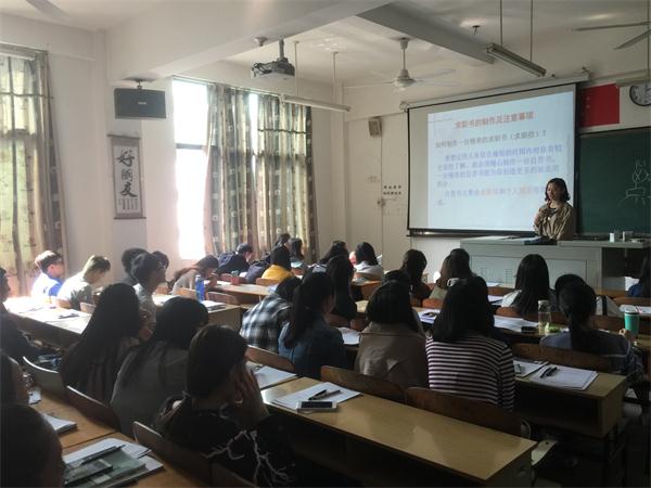 为进一步提高2018届毕业生求职择业技能,提升就业竞争力,更好的学习简历制作和提升求职信书写技巧。辅导员华清于10月30日在菲华楼B403为2014级城市管理专业全体成员开展了以“提升就业影响力,打造职场新形象”为主题的班会活动。