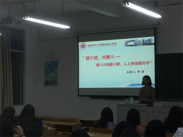 在班会现场,华清辅导员主要强调了三大点。第一:结合各单位实际,在全体青年团员中重点开展五项行动,即“活力闽科、魅力闽科、人文闽科、生态闽科、和谐闽科”,提升校园育人环境,以良好的校园环境迎接审核评估工作。第二:要求同学们高度重视,务求实效;制定计划,创新形式;广泛宣传,营造氛围。第三:宿舍卫生做到“八净”、“六无”;床上用品做到“三齐”;保持墙壁清洁,做到“四无”,严禁“四乱”等。同学们也树立了以主人翁的姿态积极参与评估,时刻铭记“迎评促建,我的责任”。在同学们的积极参与中,迎评主题班会画上了圆满的句号。