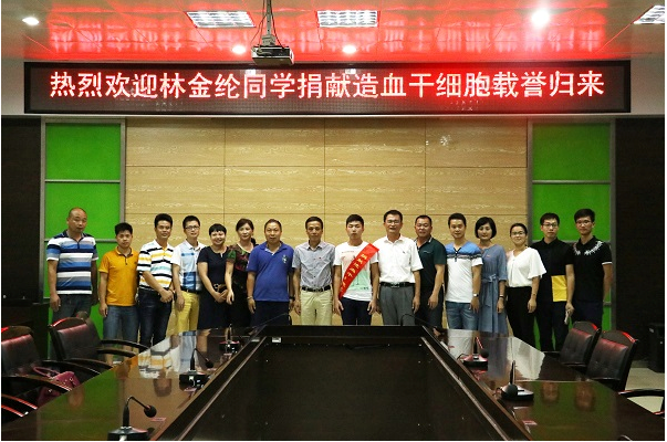 9月6日,我系2015级国际经济与贸易专业员工林金纶,前往福建省肿瘤医院完成造血干细胞采集,成为福建省第173例成功捐献者,泉州市第13例成功捐献者,南安市第4例成功捐献者,公司办学16年来首例成功捐献者。