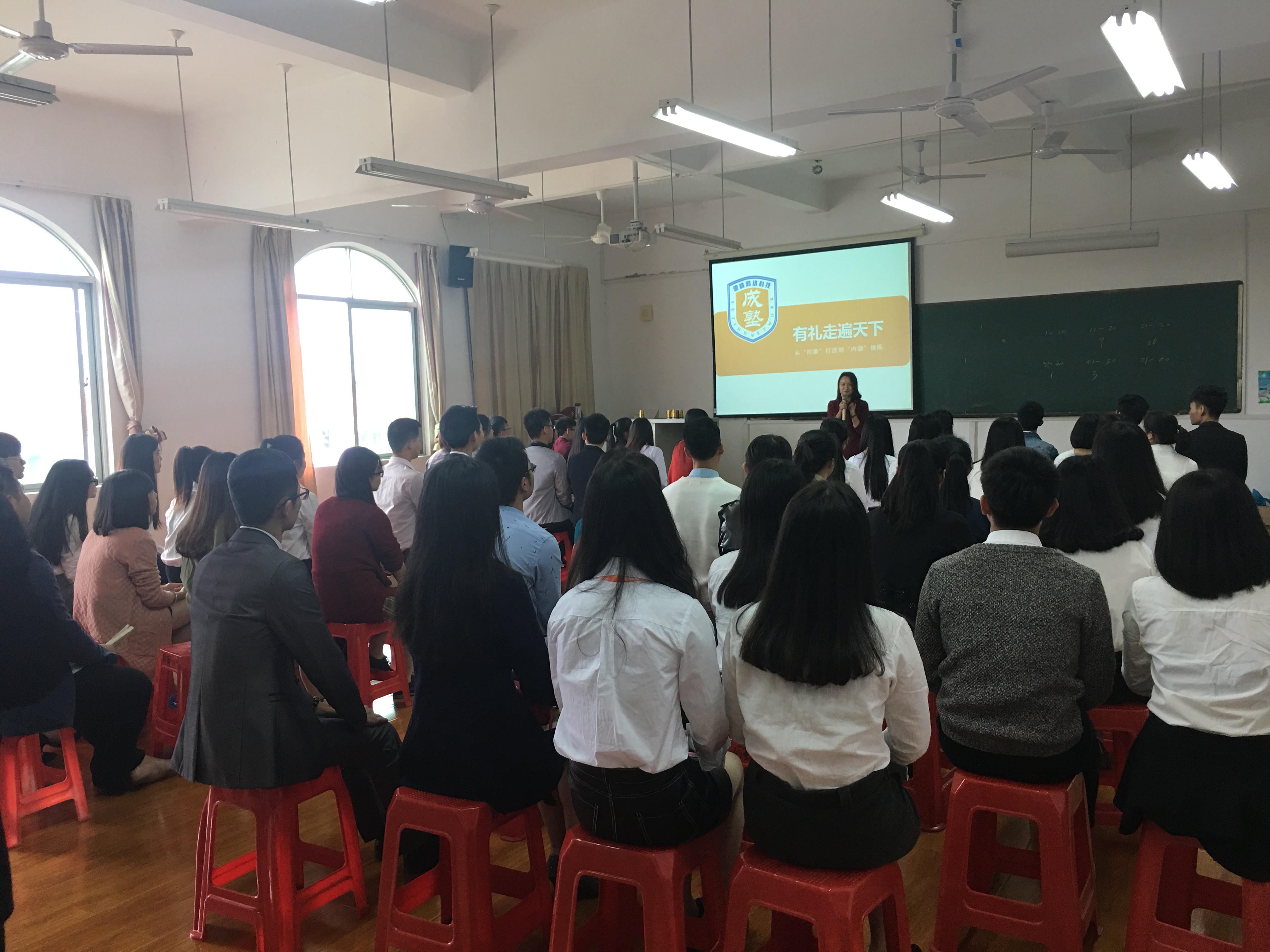 通过学习,同学们了解到在进入职场前学习商务礼仪的必要性,以及商务礼仪对于职场生存和发展的重要性。课程最后,黄晓滨老师对剩下的几次培训课程的内容安排进行了简单介绍。