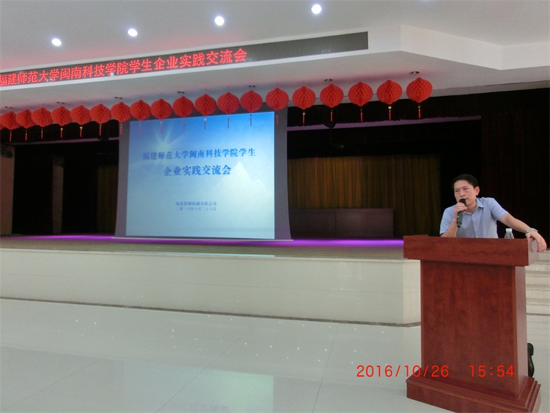 10月26日下午,经济管理系14级企业诊断实践课师生一行来到南安工业园内的群峰机械有限公司。该公司占地280亩,现有员工480人,产品销往世界107个国家,未来将实现销售收入3亿元人民币。在公司总经理助理兼人力资源经理张建海的引导下,同学们不仅参观了生产车间、仓库、产品展示,还聆听公司张总的精彩演讲。