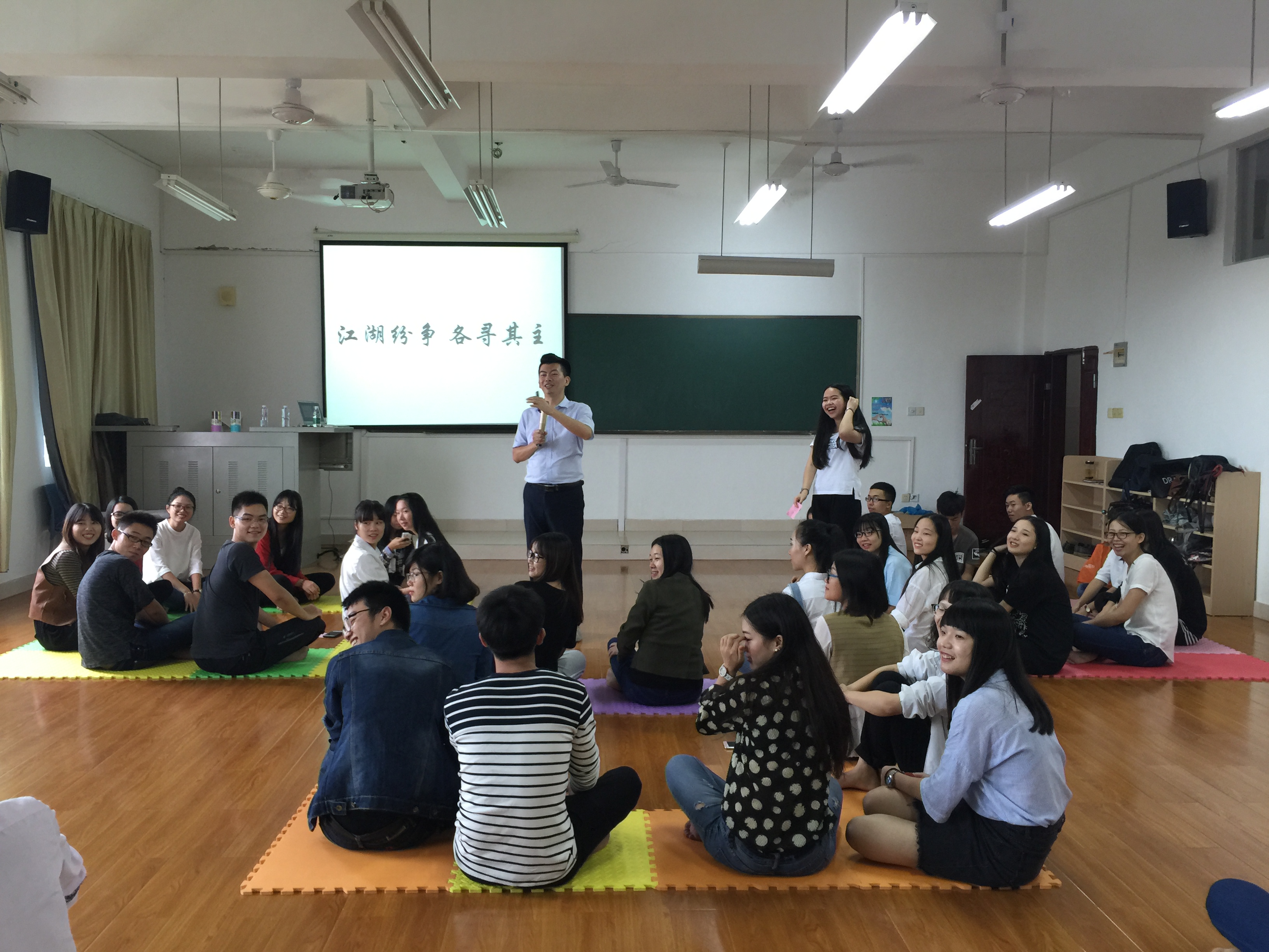 二、“江湖纷争,各寻其主”。全体成员随机分成5个小组,各自“建帮立派”,以“武林”为主题取帮派名称,选定帮主,组织口号和改编帮歌。最终,本届“速腾班”分为五个帮派、门教,分别为鳖教、十毒教、九扇门、沧海帮和逍遥派。在各帮主的组织下,帮派成员通过风采展示互相认识,熟悉彼此。