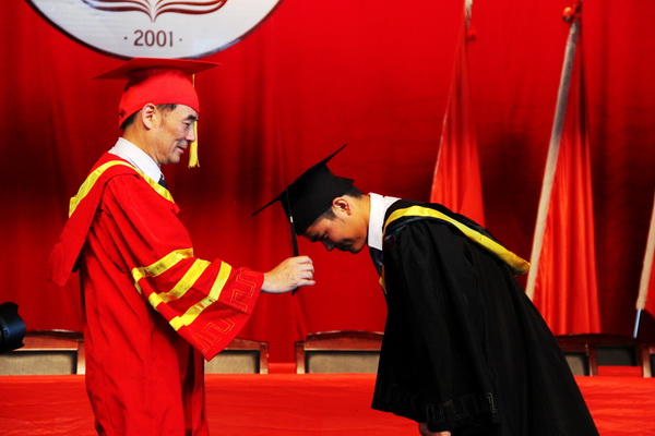 经理邱永渠教授在典礼上致辞,对毕业生提出三点希望:一、希望大家且行且学且成长,做一个终身学习的人,树立终身学习理念,不断更新知识,坚持充实自己,永远追求进步,适应社会发展,成就自己卓越的人生;二、希望大家且行且思且成功,在面对机遇挑战、追求钱权名利时,能有舍弃的胸怀和勇气,能够怀揣一份对社会的爱,带着一点仰望星空的情怀,脚踏实地为民族、为社会、为国家做一些事情,让自己从优秀走向更加优秀;三、希望大家且行且歌且珍惜,学会感恩,懂得知足,珍惜拥有,无论顺境或逆境,都能把目光放得再长远一些,都要“勇于担当,重情感恩”,都要“行仁义事,存忠孝心”。最后,邱永渠经理创作赠别诗《蝶恋花》寄语2015届所有的毕业生:“又是金风收获季。学苑飘香,满目皆桃李。播种栽培农活细,春华秋实园丁喜。毕业之时心语寄。报答师恩,校训需铭记。风雨兼程强意志,辉煌腾达惊天地。”现场掌声雷动,会场上回荡起了感恩的最强音。