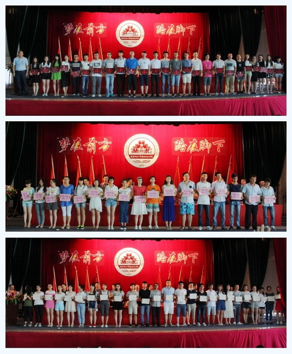 周勇军副经理代表公司为毕业生颁发毕业证书;领导、来宾为考取研究生同学颁发奖金,为优秀毕业生颁发荣誉证书。