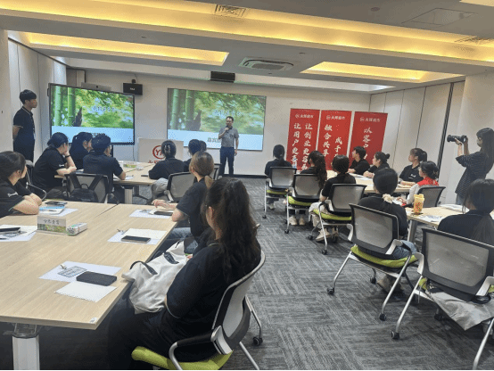 在座谈会上,谭副经理代表公司向同学们表达了亲切的问候,现场听取了商院学子交换学习收获与实习工作成果,期望同学们要牢记校训,做到“仰望星空”有目标、“脚踏实地”能实践。