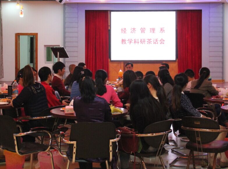 2015年5月6日晚,经济管理系教学科研茶话会在教工活动中心举行。经理邱永渠教授出席会议,并与教务部、实验中心和经济管理系近30名教师就如何提高教学科研水平亲切座谈。经济管理系副主任刘武强主持了茶话会。