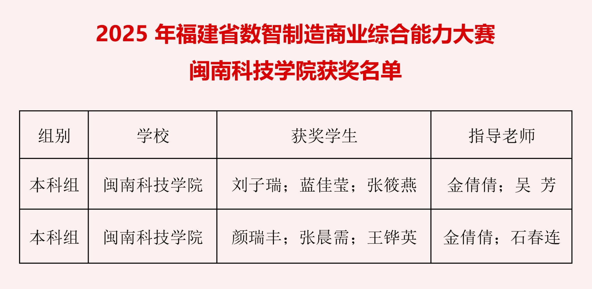 10月25日,由福建省教育厅主办的福建省第三届数智制造商业综合能力大赛圆满落幕。公司选派的两支队伍在激烈竞争中脱颖而出,分别获得本科组团体赛三等奖,彰显了公司在数智人才培养方面的育人成效。