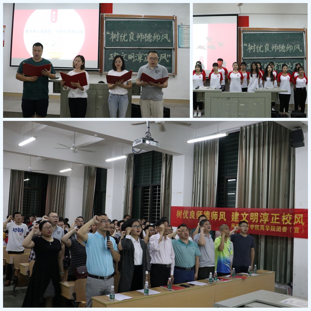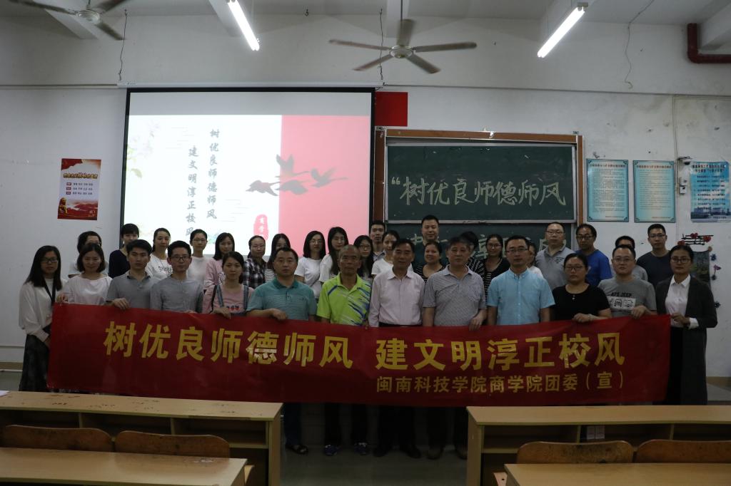“邱永渠教授寓教于乐、和蔼可亲,他不仅上课生动有趣,而且写得一手好诗,经常在课外与我们分享诗作,讲解诗词含义,他用言传身教影响着同学们,我们都很喜爱他。”“谭鑫老师课堂上幽默风趣,工作上是‘拼命三郎’,生活上是我们的良师益友,给了我们很多帮助,是我们学习的榜样。”活动中,员工代表黄敏婷和许宇卓分别分享了身边的师德典型事迹,赢得阵阵掌声。
