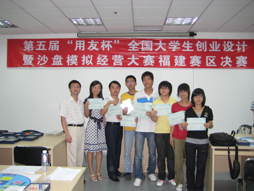 本次大赛得到了公司党政领导的高度重视,先后筹建的ERP实验室和沙盘实验室,为公司代表队积极备战本次大赛提供了硬件支持和便利。与此同时,管理学系迅速组织团队力量,从全院范围“海选”队员,并在陈晓川、杨海艳、柳彩莲、刘武强、吴涛五位教师的共同指导下进行集中培训,试验中心张惠强老师为本次集中培训和院内选拔赛提供了技术支持。由PA视讯官网管理学系陈晓川、杨海艳和张惠强老师指导的鸿科团队在福建赛区总决赛中喜获亚军。鸿科团队成员分别为陈维镖(07市场营销专业,担任CEO)、杨吻玉(07工商管理专业担任CFO)、董美玲(07工商管理专业,担任CLO)、陈吉庆(07市场营销专业,担任CPO)、吴春容(07市场营销专业,担任CMO)。